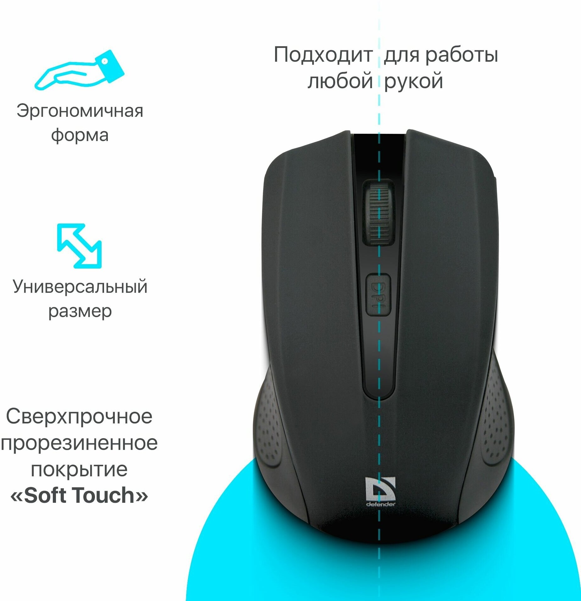 Мышь беспроводная Defender Accura черная/ SoftTouch/ 800-1600 dpi /4 кнопки,черный