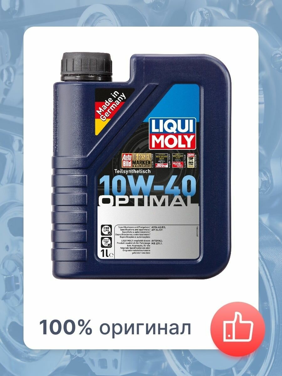 Масло моторное Liqui Moly Optimal 10w40 полусинтетическое, API SL/CF, ACEA A3/B3, для бензинового двигателя, 1л, арт. 3929