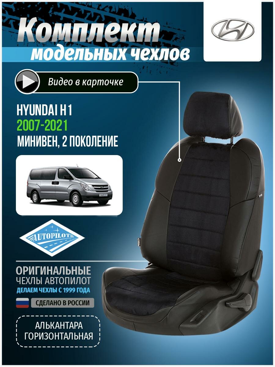 Купить Авточехлы для Hyundai H1 2 2007-2020 Автопилот Черный Алькантара kha-kh1-kh18-chch-a