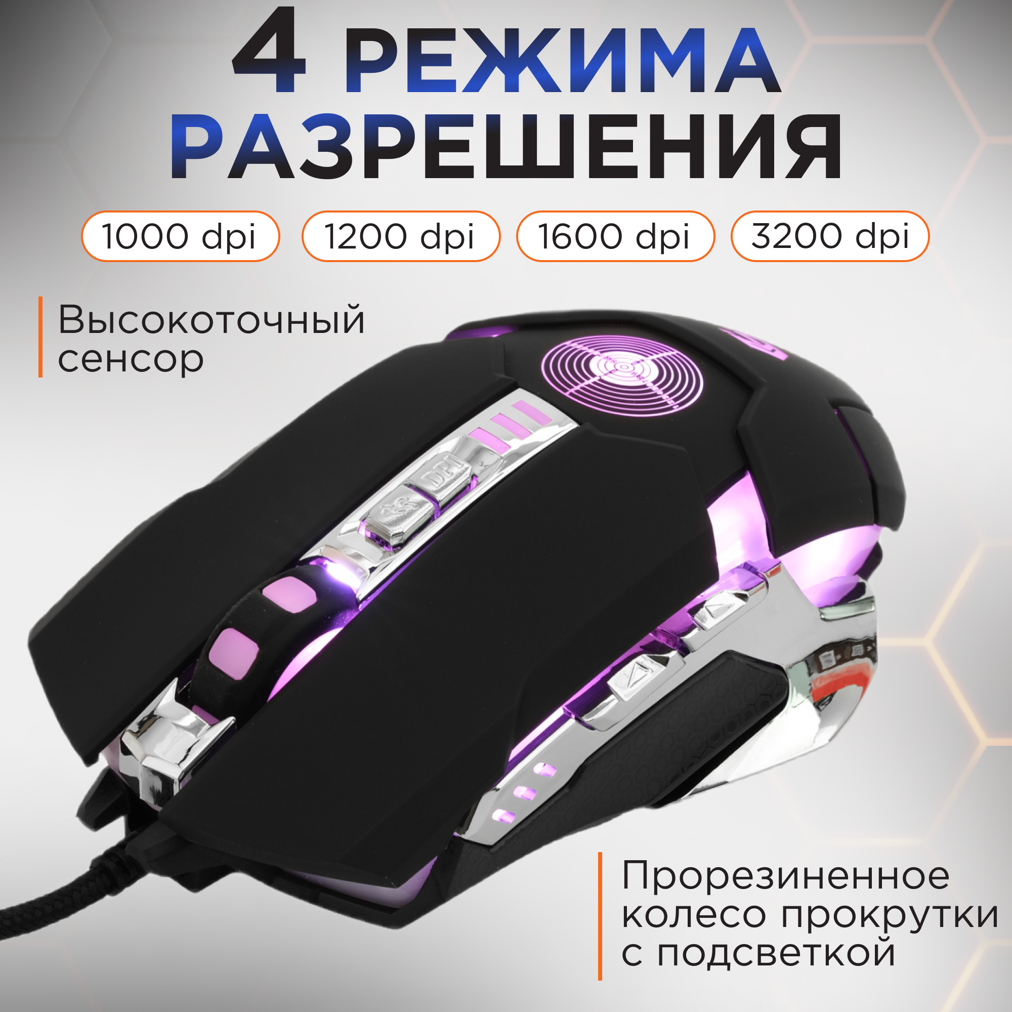 Мышь MG-530, игровая, проводная, 7 кнопок, подсветка, 3200 dpi, USB, чёрная