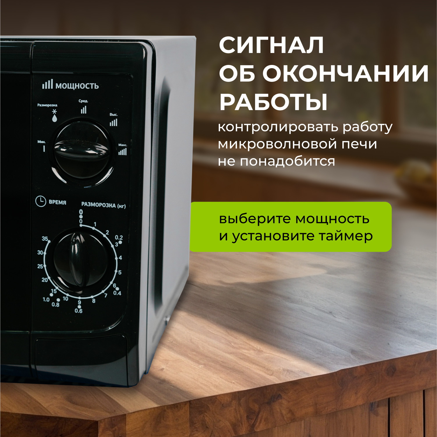 Автоматическая разморозка. Быстро и полностью прогревает еду. |