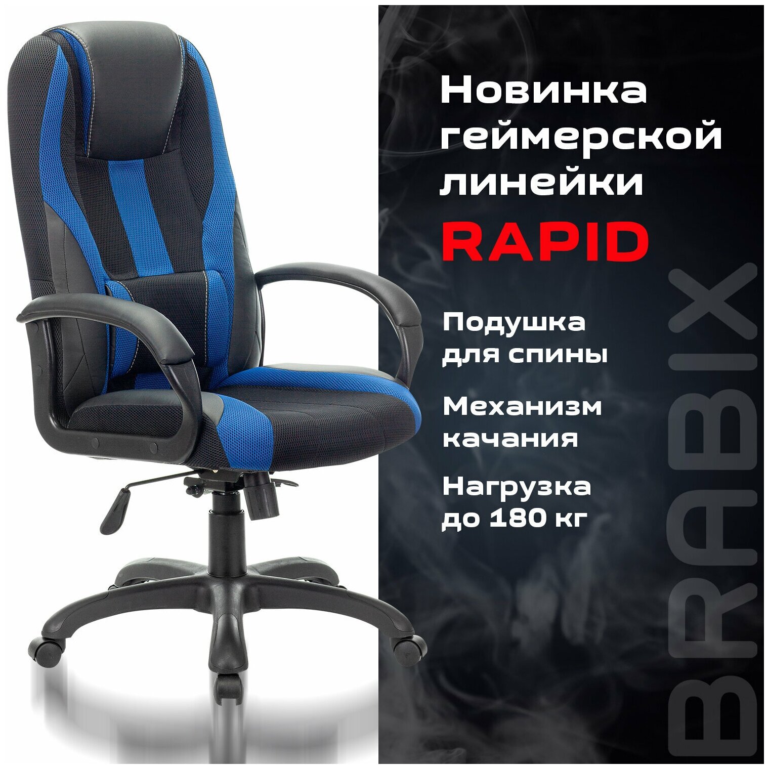 Игровое кресло для геймеров BRABIX PREMIUM "Rapid GM-102", нагрузка 180 кг, экокожа/ткань, черное/синее