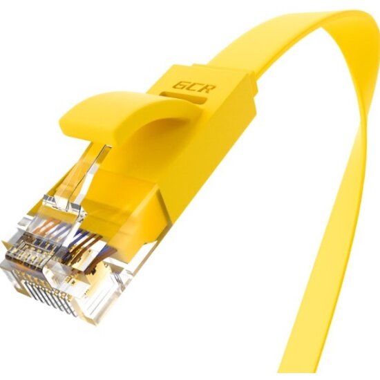 GCR Патч-корд 1.0m, кат.6, PROF, плоский,прямой, UTP, медь, желтый, 30 AWG, ethernet high speed 10 Гбит/с, RJ45, T568B (GCR-LNC622-1.0m)