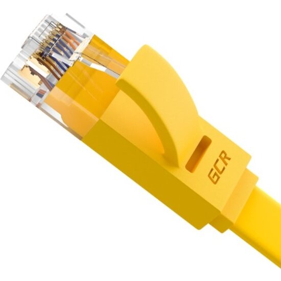 LAN кабель 15м GCR PROF плоский UTP cat.6 10 Гбит/с RJ45 LAN компьютерный кабель для интернета медный контакты 24K GOLD (GCR-LNC62) желтый