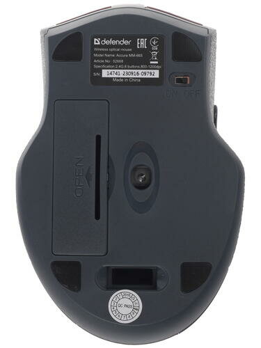 Defender Accura MM-665 серый Defender Беспроводная оптическая мышь Accura MM-665 серый,6 кнопок,800-1200 dpi 52666