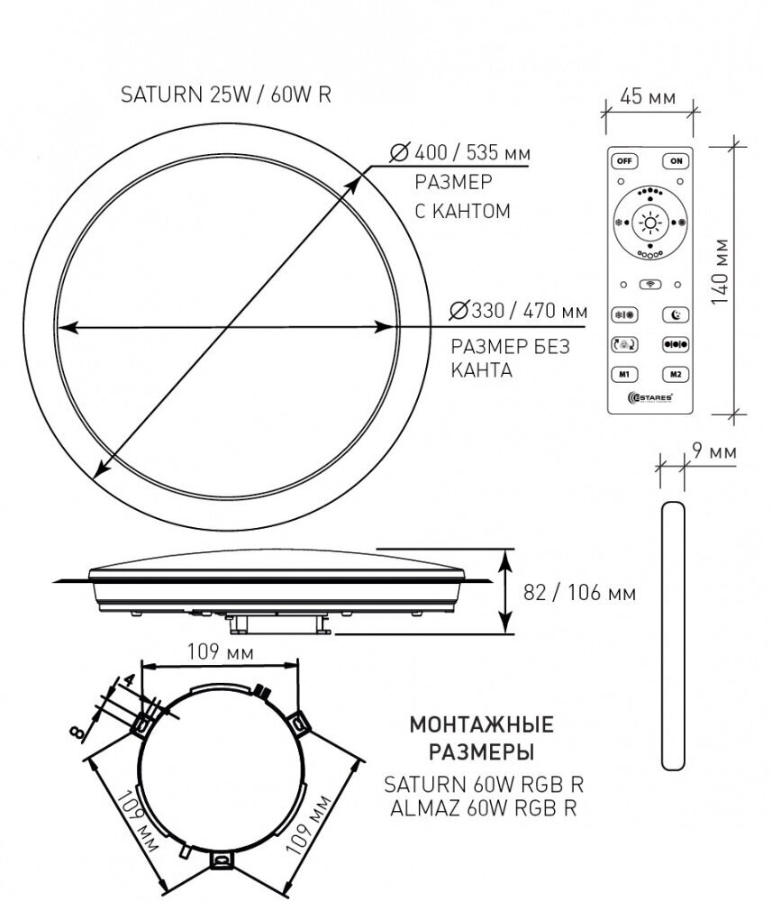 Estares св-к-люстра св/д управл. Saturn R RGB 25W(2200lm) 2K-4K-6K d330x82 пульт ДУ без канта 558316