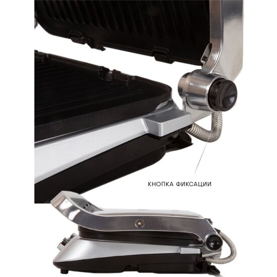 Электрогриль Pioneer GR1010E silver silk со съемными пластинами с антипригарным покрытием и поддоном, таймер, регулировка температуры, 2100 Вт