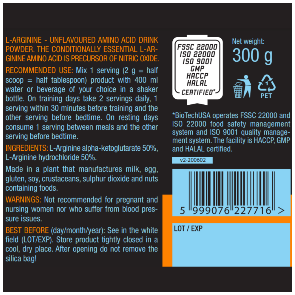 Купить BioTechUSA L-Arginine 300 гр., без вкуса