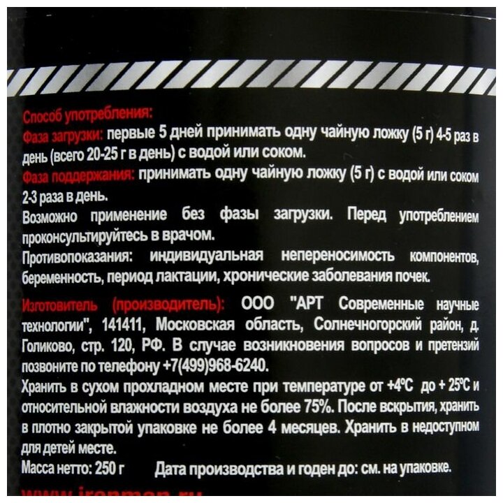 Креатин Моногидрат «IRONMAN» 100% 250 г интересное: