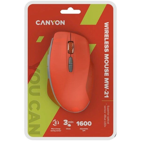 Мышь беспроводная Canyon MW-21, 1600dpi, Wireless, Оражевый/Красный CNS-CMSW21R