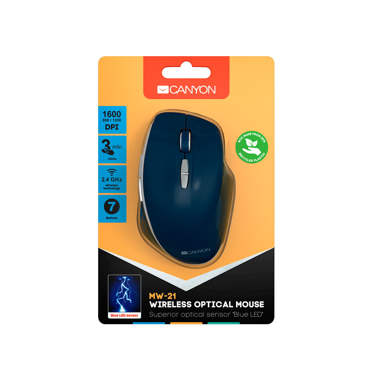 Беспроводная мышь Canyon “Blue LED" MW-21 800/1200/1600 DPI 7 кнопок Черный