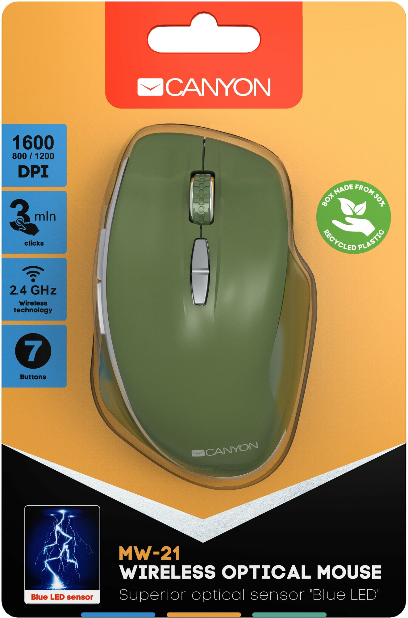 Мышь беспроводная Canyon MW-21, 1600dpi, Wireless, Оливковый CNS-CMSW21SM