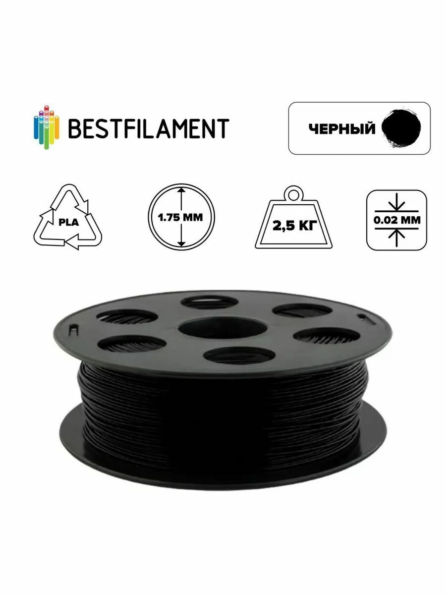Пластик для 3d принтера PLA черный 1,75 мм BestFilament, 2,5 кг
