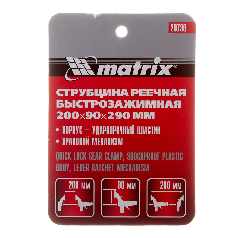 MATRIX Струбцина реечная быстрозажимная, пластиковый корпус рычажно-храповой механизм, 200 х 90 х 290 мм, штанга 5 х 20 мм Matrix, ( 20736 )