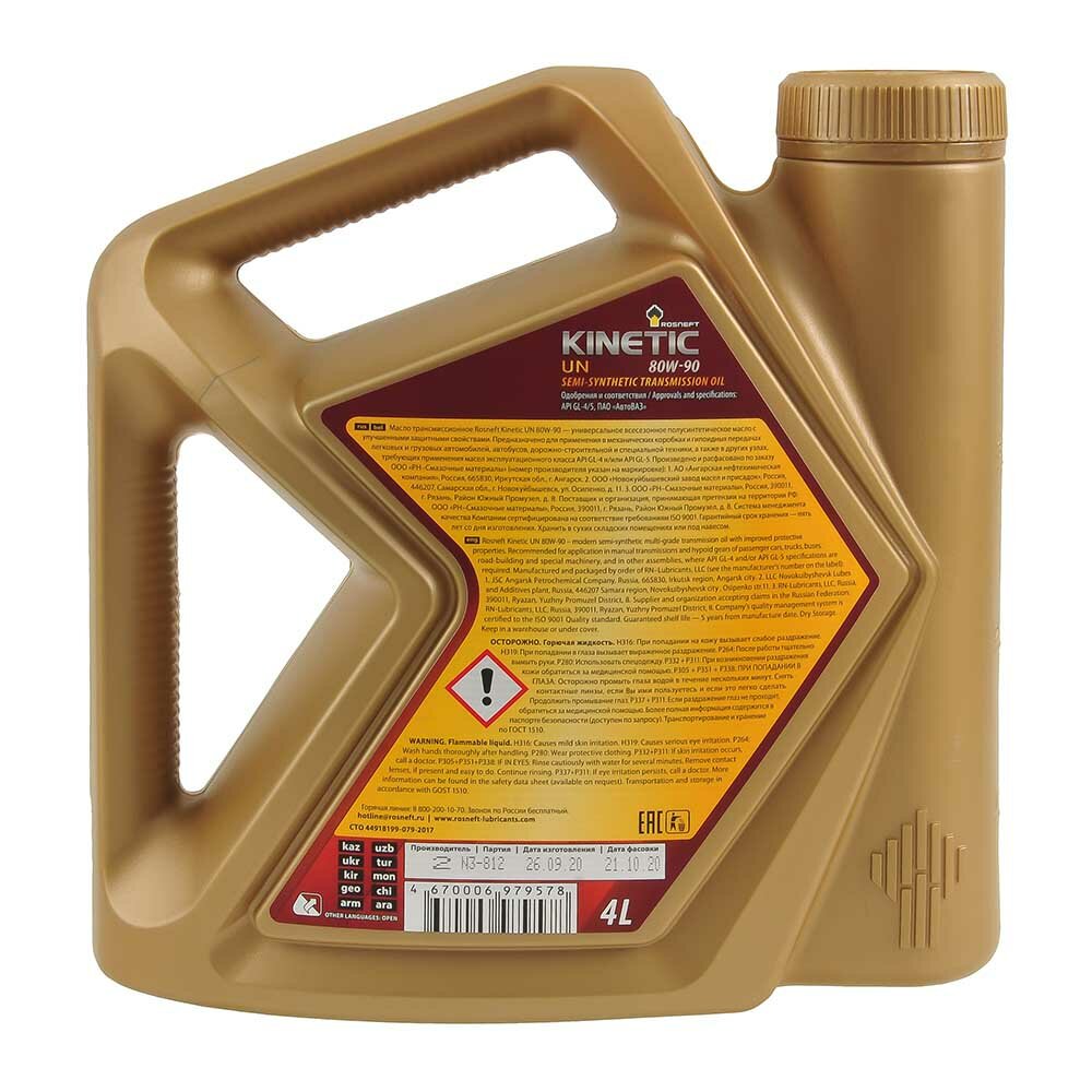 Масло Трансмиссионное Полусинтетическое Kinetic Un 80w-90, 4л Rosneft арт. 40817642