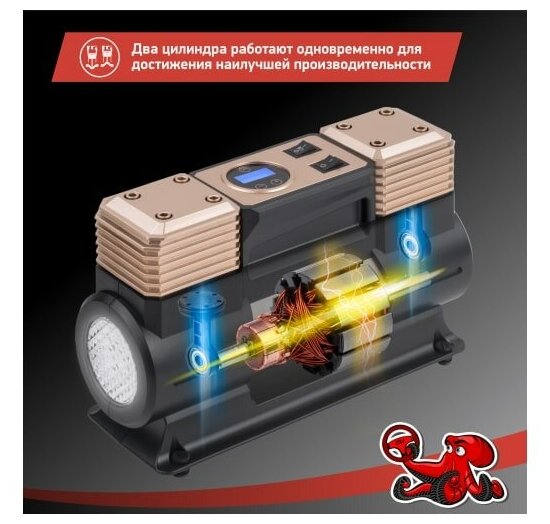 Двухцилиндровый компрессор DSV Smart, с LED фонарем 75 л/мин 12В, цифр. маном, 226000
