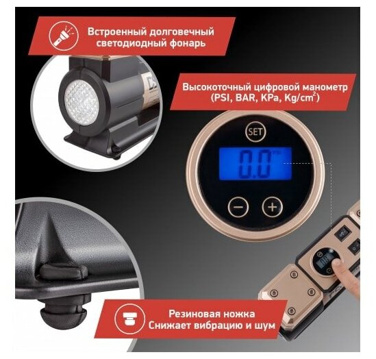 DSV Компрессор Smart, двухцилиндровый с LED фонарем 75 лмин 12В, цифр. маном, 226000