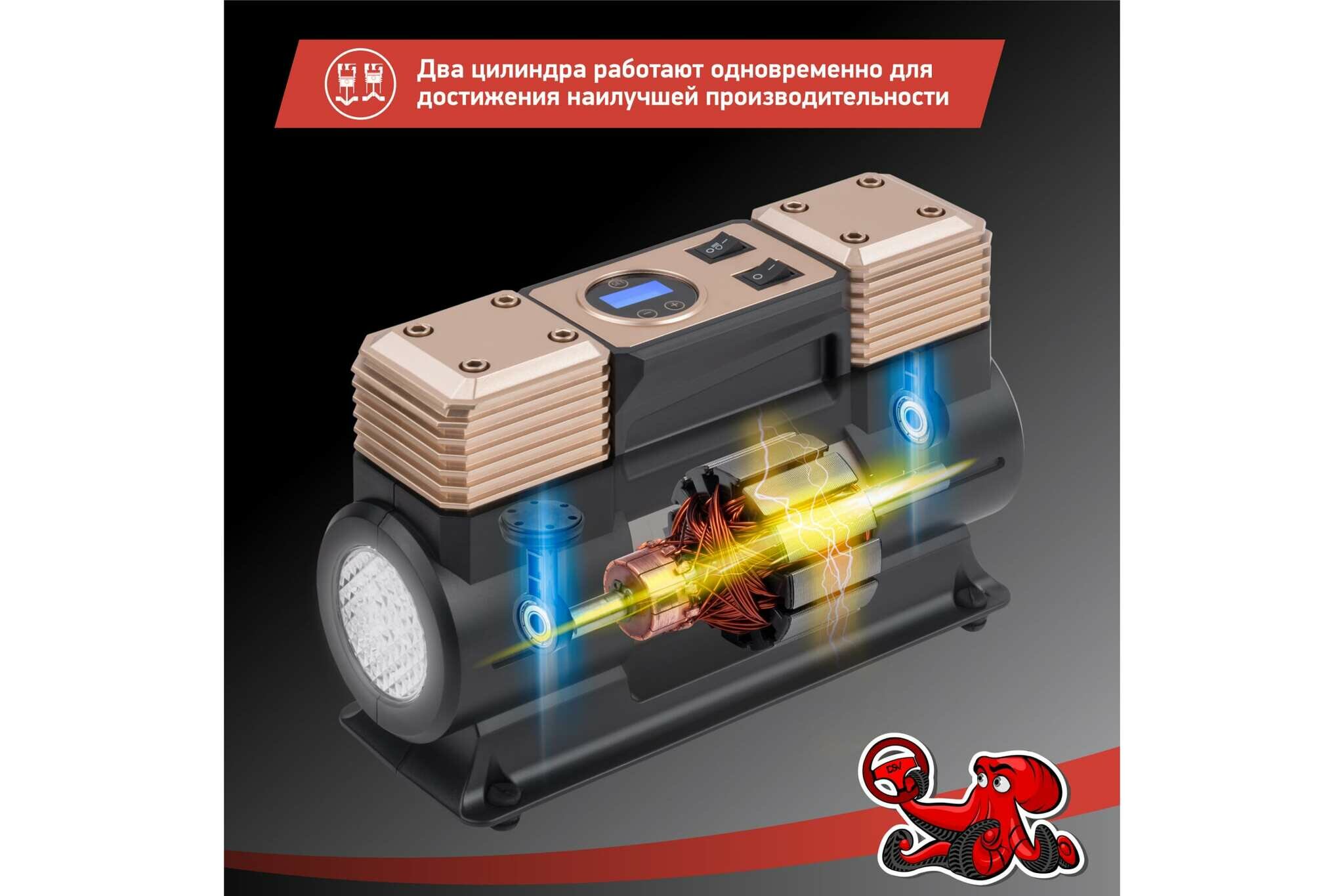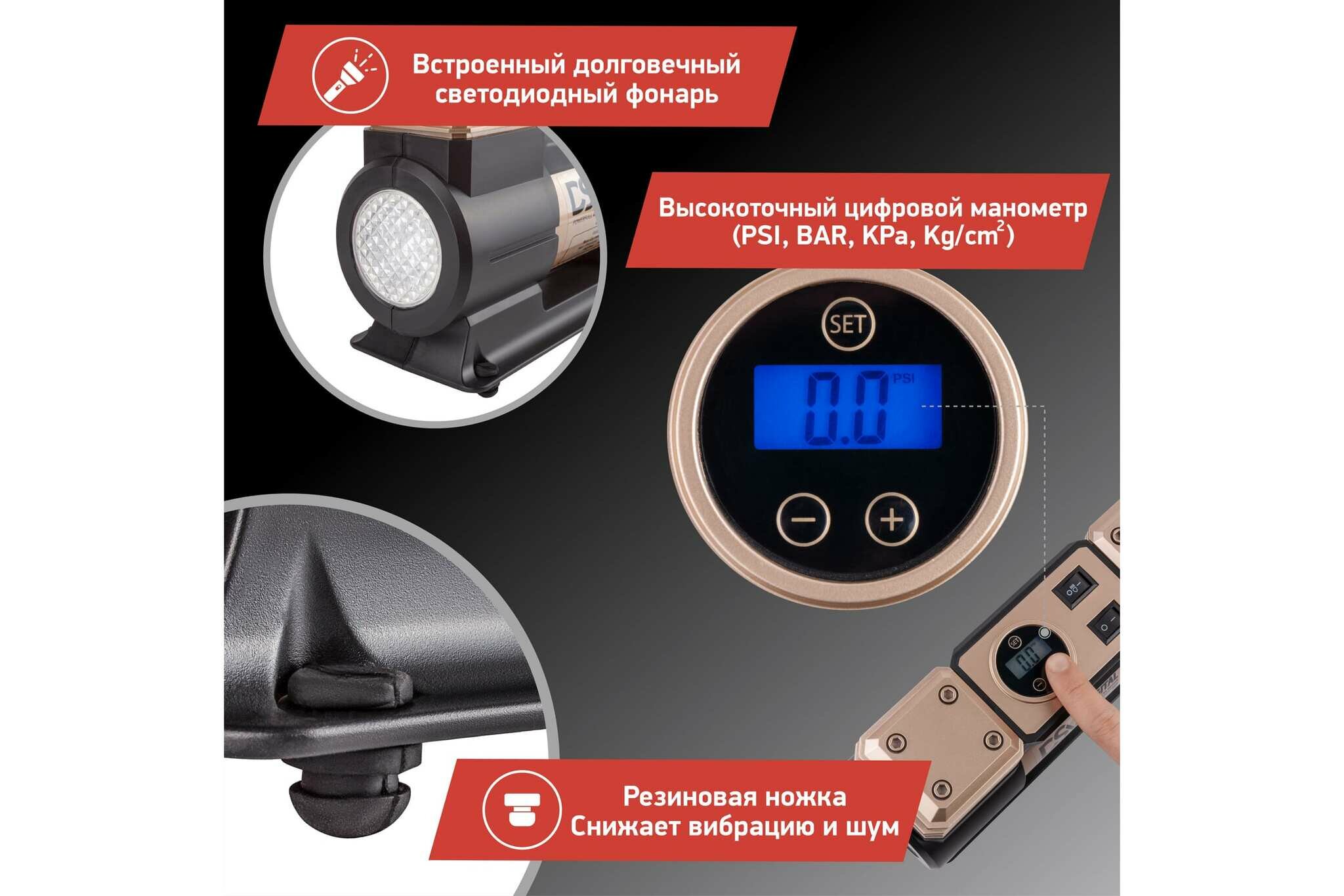 Двухцилиндровый компрессор DSV Smart, с LED фонарем 75 л/мин 12В, цифр. маном, 226000