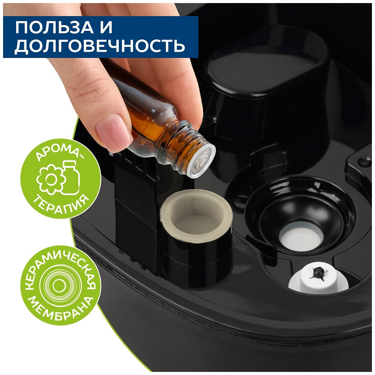 | Отзыв: | Максимально минималистичная форма и классический чёрный цвет вписались в обстановку кабинета лучше не придумаешь. Поставили не так давно, но я уже ощущаю очевидные плюсы. Нос дышит прекрасно, никакой сухости слизистой. Пару капель хвойной эссенции в отсек,и на протяжении всего дня я продуктивен и заряжен. Всего делов подливать сверху водички. |