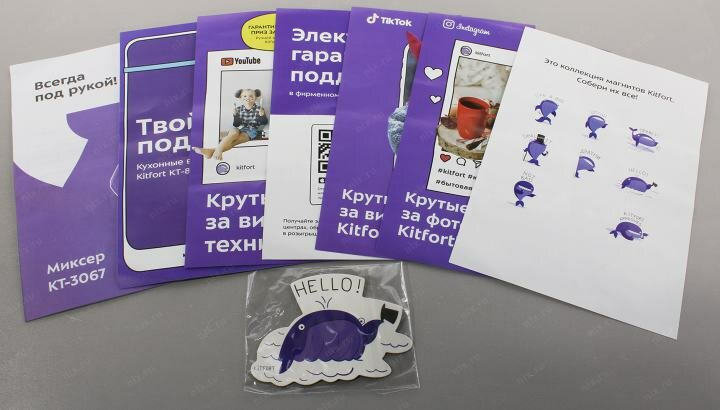 Недостатки Нет чаши в комплекте, а она мне и не нужна) осталась от старого миксера. А самое главное, соотношение цены и качества! Классный миксер за привлекательную цену! Бонусом в упаковке был магнитик и предложение получить в подарок кухонные весы Китфорт КТ-803. Буду ждать подарок) |