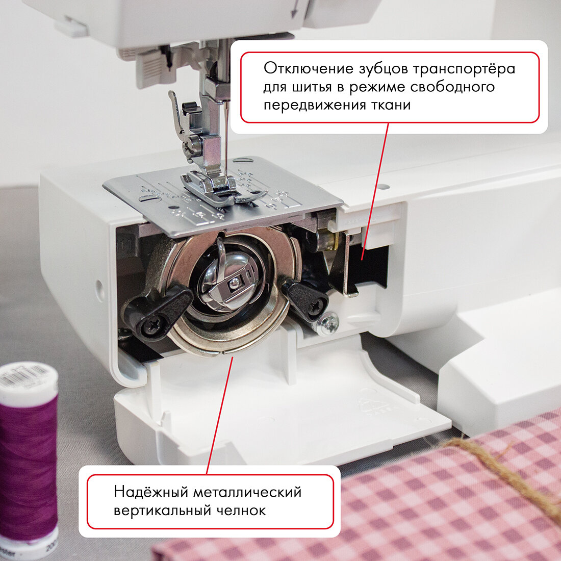 | Минусы: | Не прошивает толстую ткань, вылетает нить |