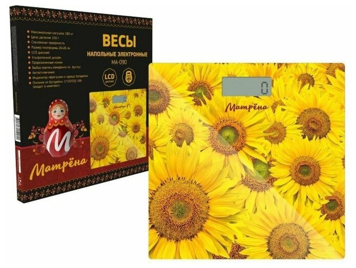 Весы напольные электронные Матрена МА-090, до 180 кг, одуванчик