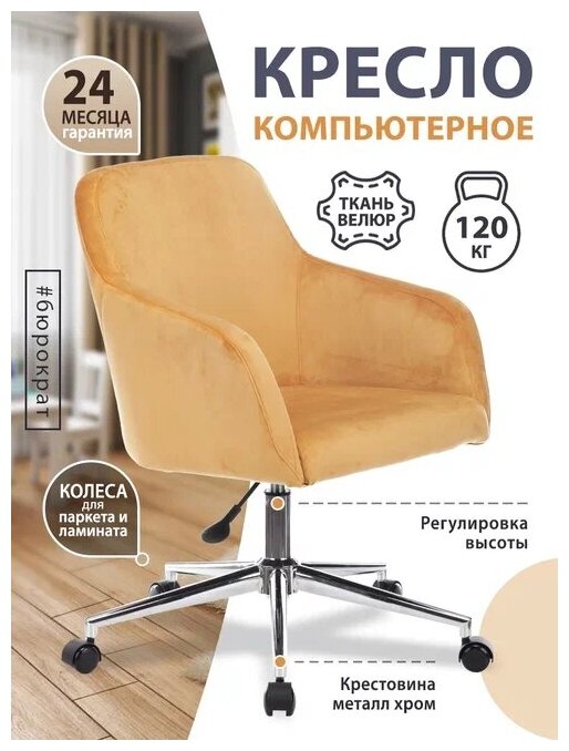 Кресло CH-380SL горчичный Velvet 73 крестовина металл хром / Офисное кресло для оператора, персонала, сотрудника, для дома