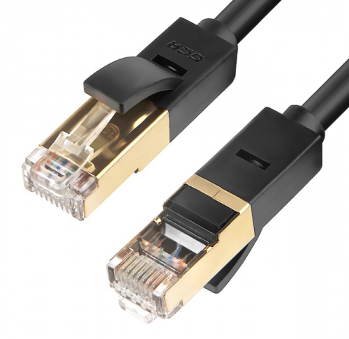Короткий патч-корд 50см F/FTP PROF cat.7 10 Гбит/с RJ45 LAN компьютерный кабель для интернета 24K GOLD экранированный черный (GCR-FTP701)