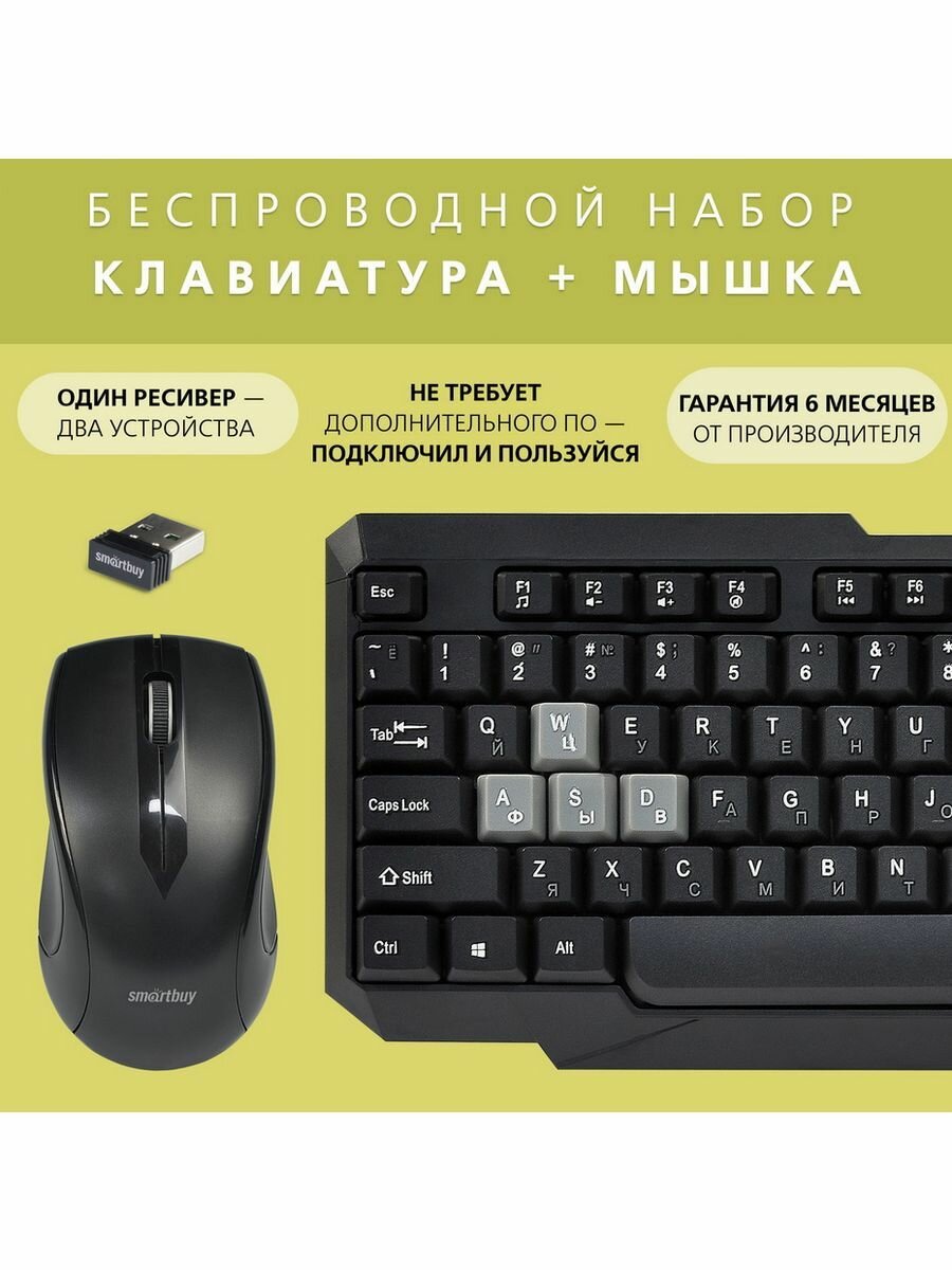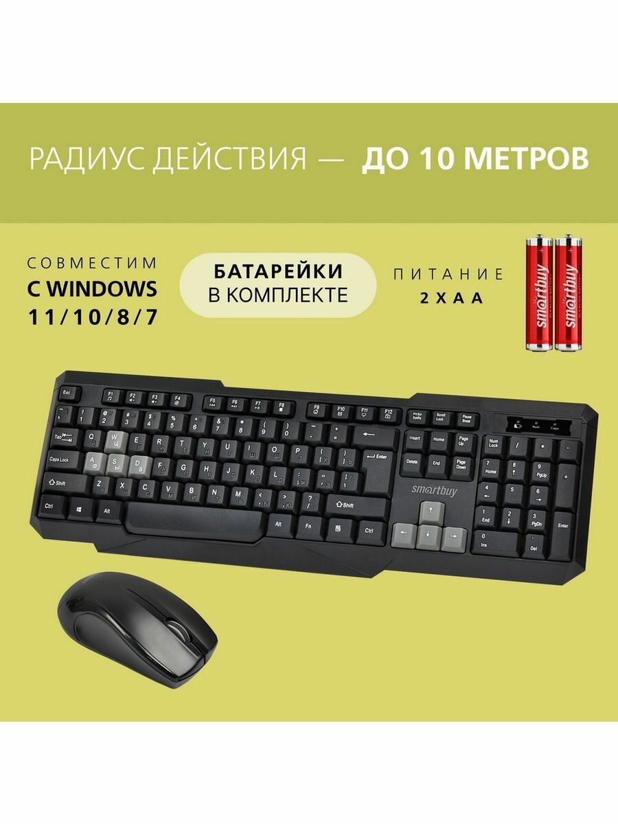 Клавиатура + мышь SmartBuy ONE, беспроводная, USB, черный/серый (SBC-230346AG-KG)