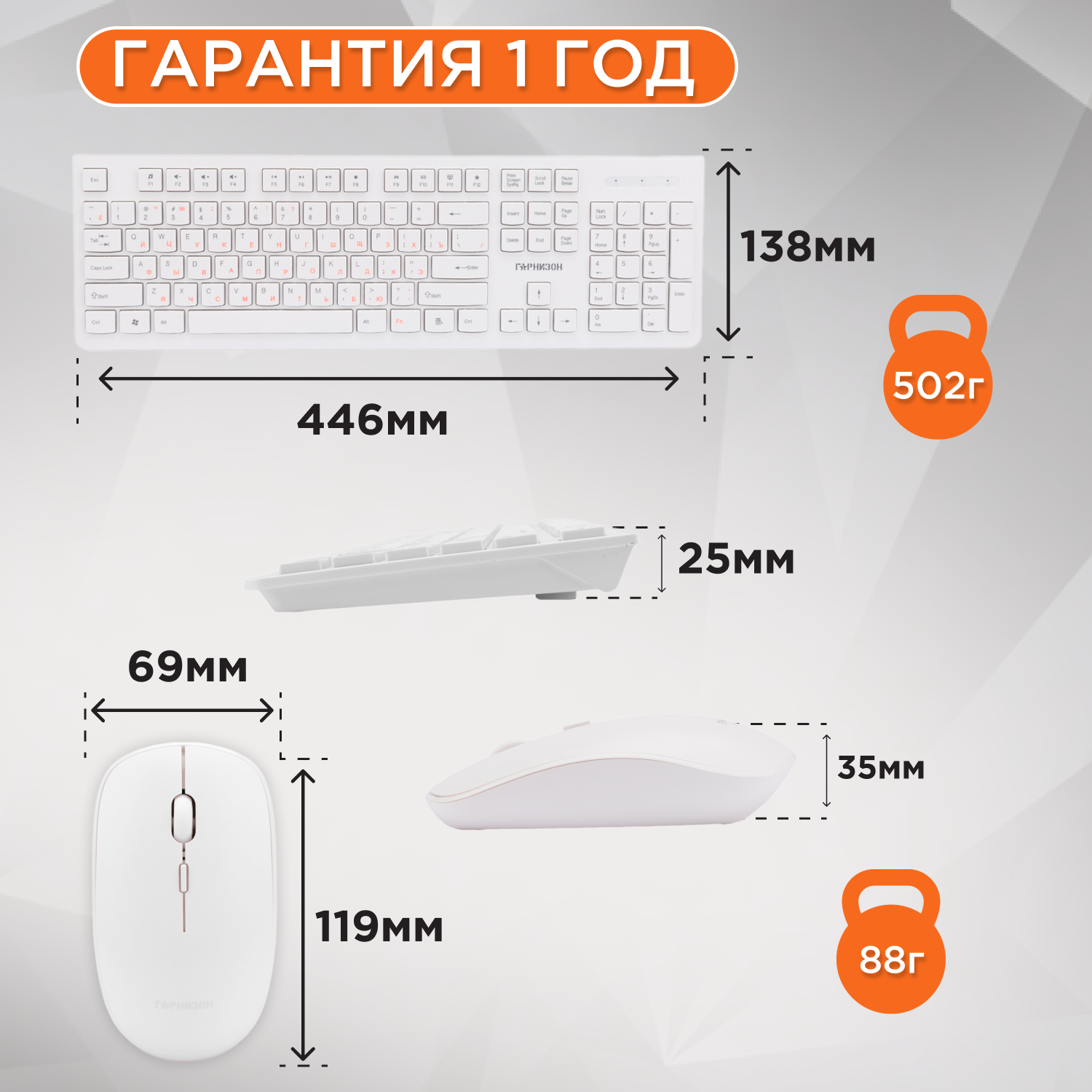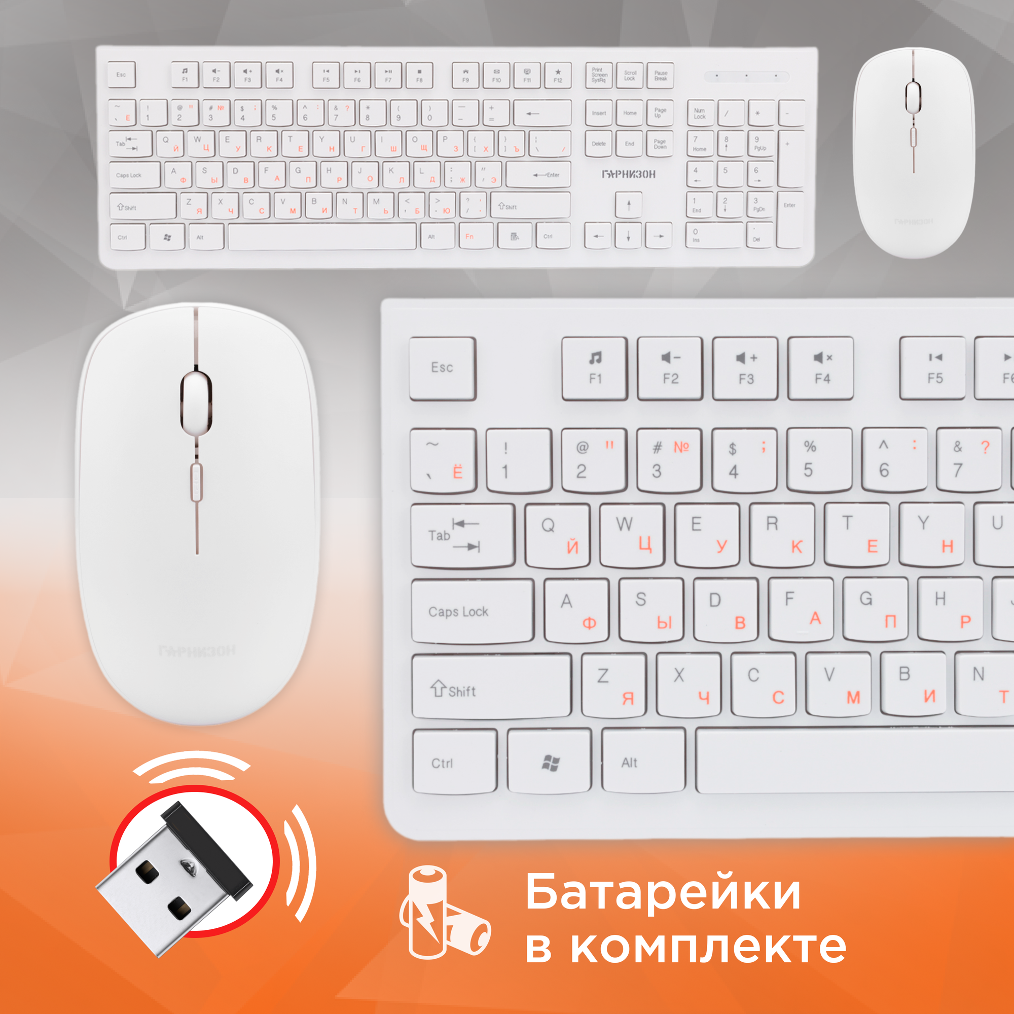 Клавиатура+мышь Гарнизон Gks-140, беспроводная, белый, 2.4 ГГц, 1600 Dpi, Usb, "nano" приемник