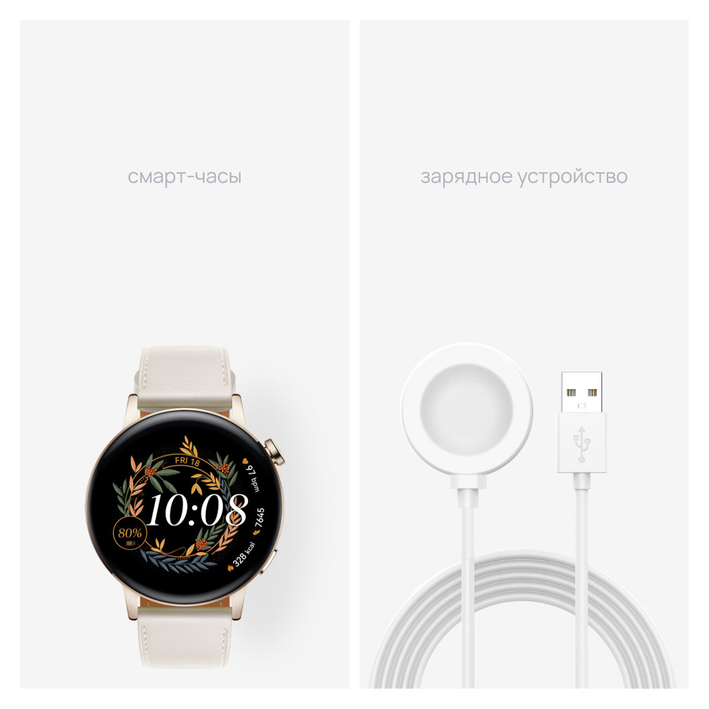 Смарт-часы Huawei Watch GT 3 Milo-B19V, 42мм, 1.32", белый / белый [55027149] интересное: