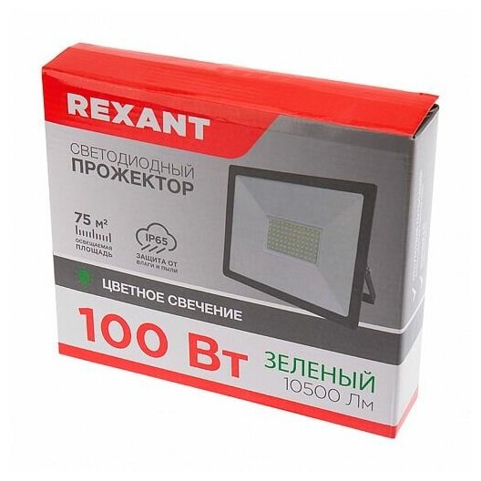 Прожектор светодиодный Rexant, 100 Вт, зеленый свет, IP65, черный