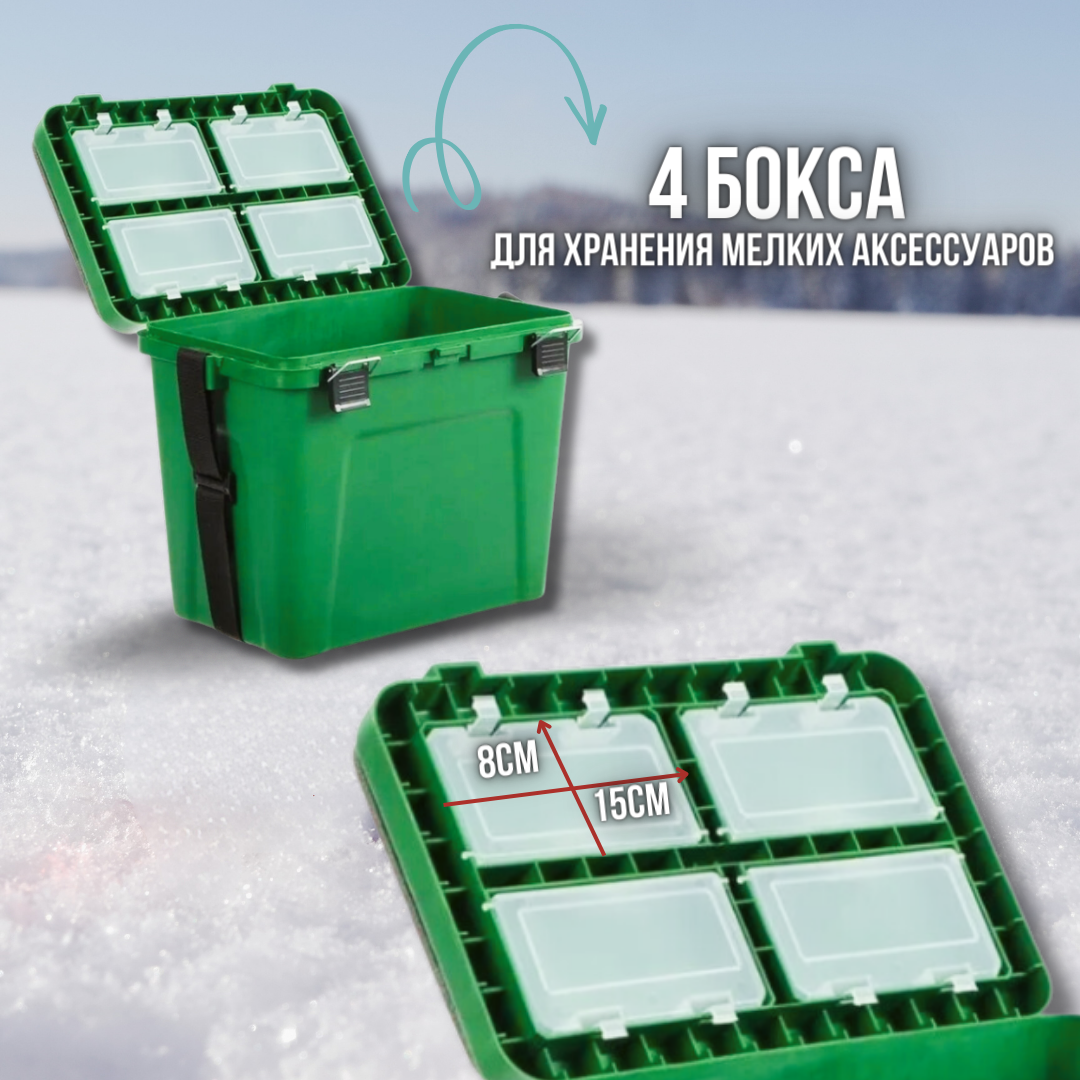 Ящик рыболовный для зимней рыбалки Три Кита Малый 310*360*240 мм 4 отделения для приманок , зеленый