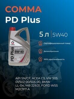 comma 5w40 pd plus (5l)_масло моторное! синт.\ acea c3,api sn/cf, ford wss m2c917-a, mb 229.31/226.5