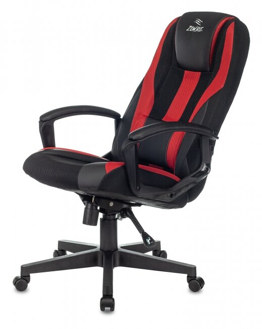 Кресло компьютерное игровое Zombie, экокожа, ткань, черное, красное, крестовина пластик - Кресло геймерское, с подголовником