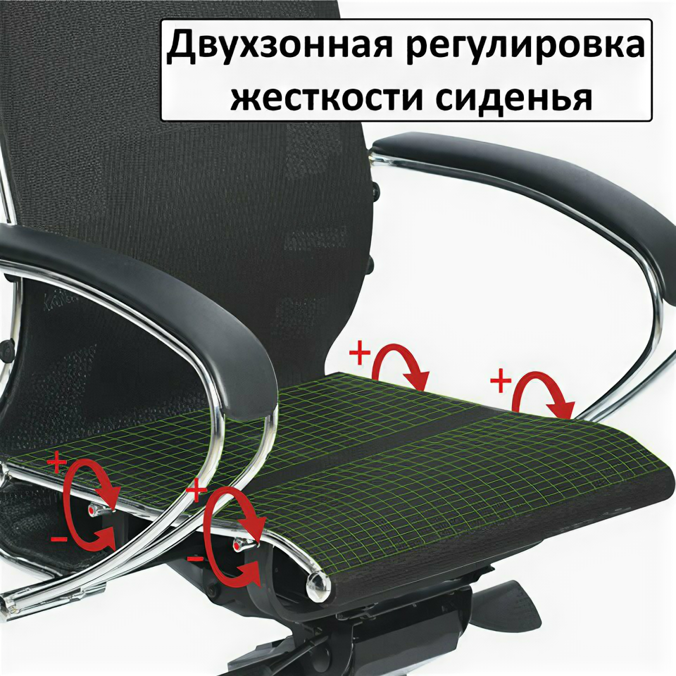 Кресло офисное метта К-7-Т 532467 хром, прочная сетка, сиденье и спинка регулируемые, черное