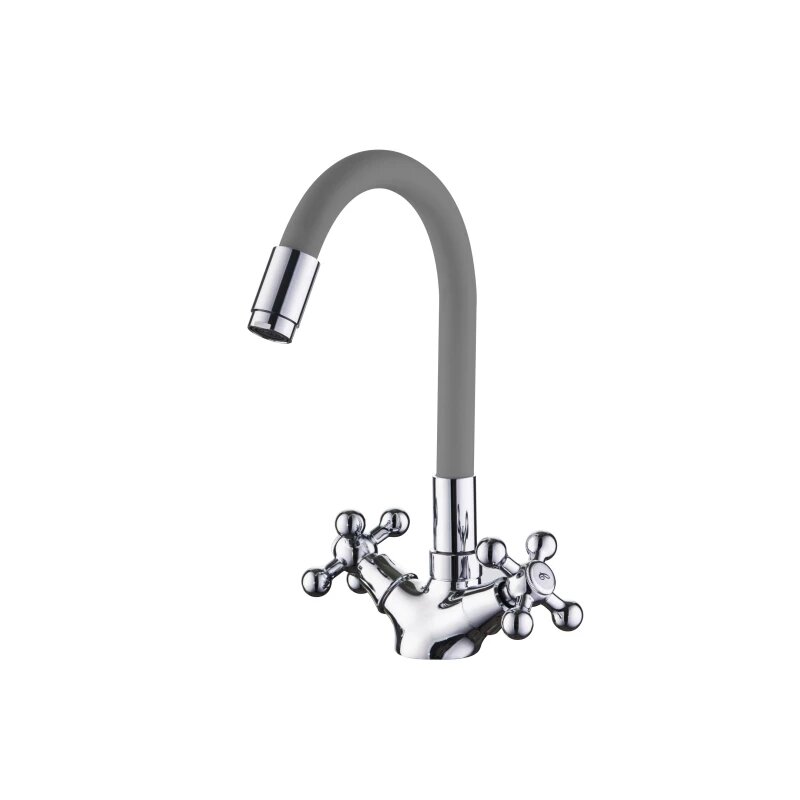 Смеситель раковина крест силиконовый излив Серый+Хром Accoona A9871T