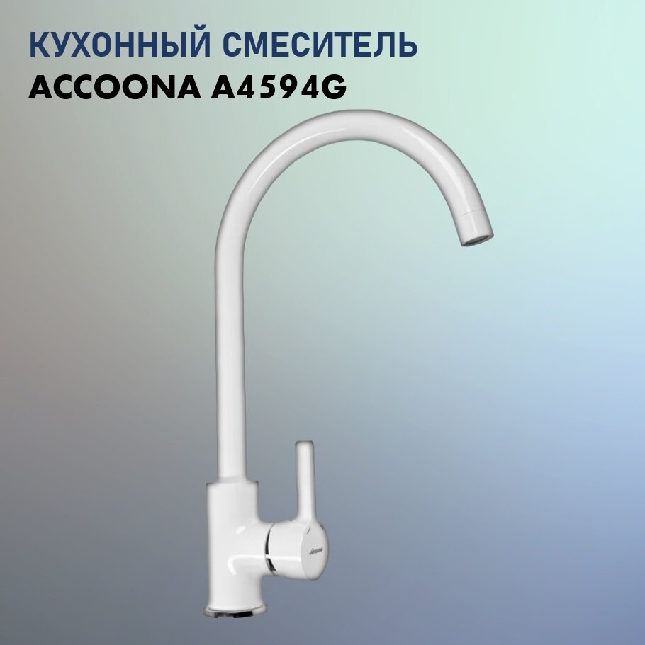 Cмеситель для кухни Accoona A4594G, однорычажный, высокий излив, латунь, белый Accoona 4973658 .