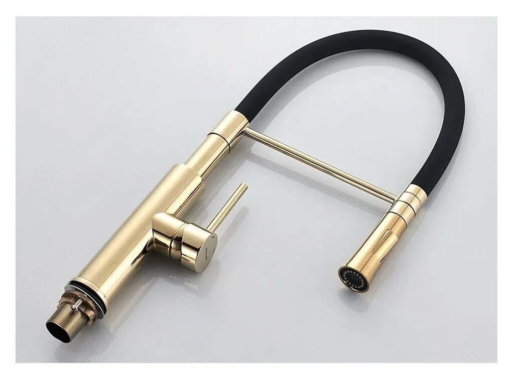 Смеситель для кухни с латунным корпусом и силиконовым изливом (черный+золото) A4890WF-1 Accoona