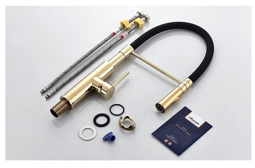 Смеситель для кухни Accoona A4890wf-1, однорычажный, латунь, черный/золото Accoona 3878341 .