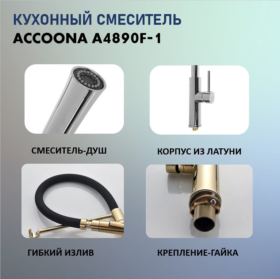 Смеситель для кухни Accoona A4890wf-1, однорычажный, латунь, черный/золото Accoona 3878341 .