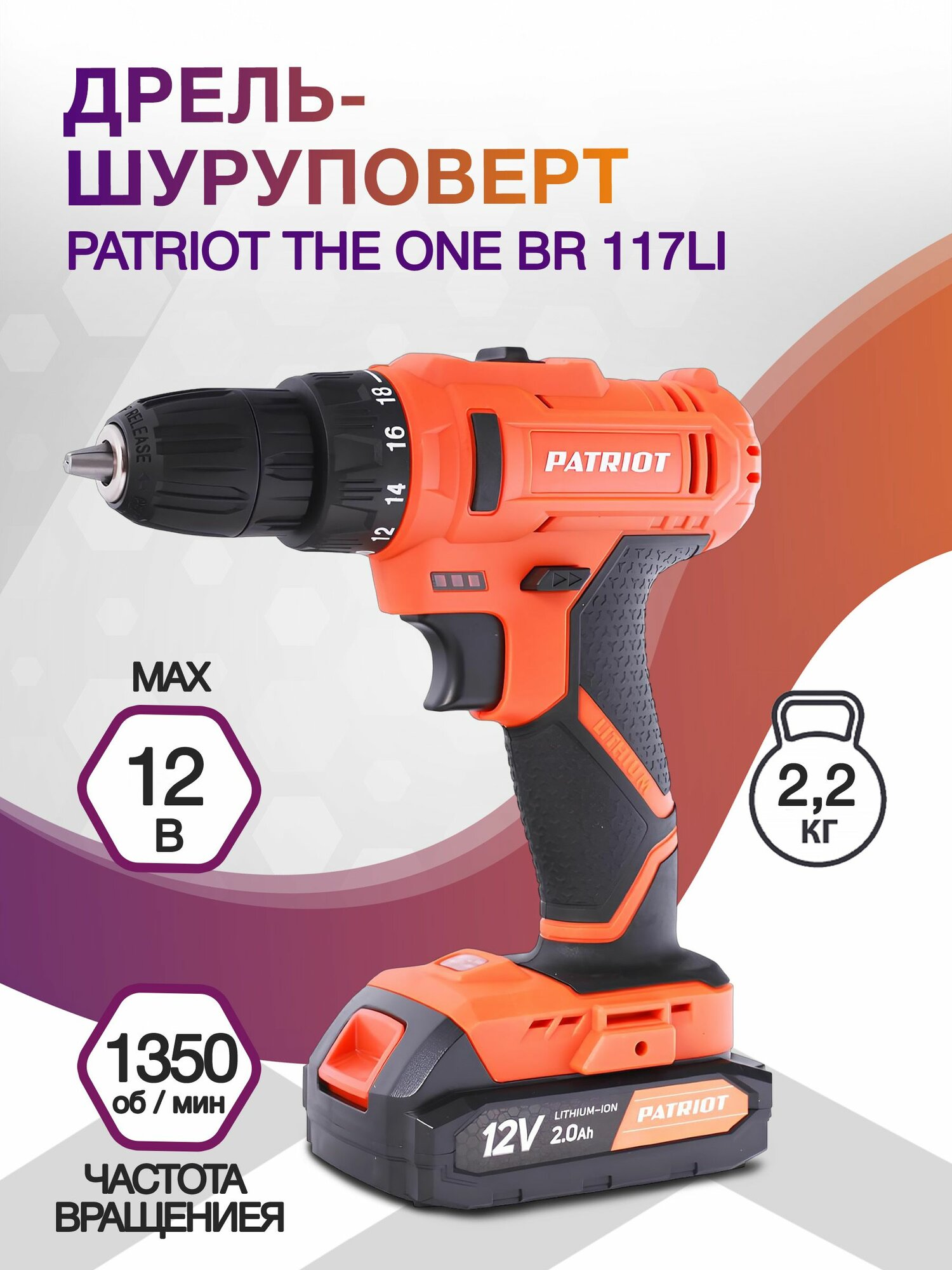 Дрель-шуруповерт Patriot THE ONE BR 117Li аккум. патрон:быстрозажимной (кейс в комплекте) интересное: