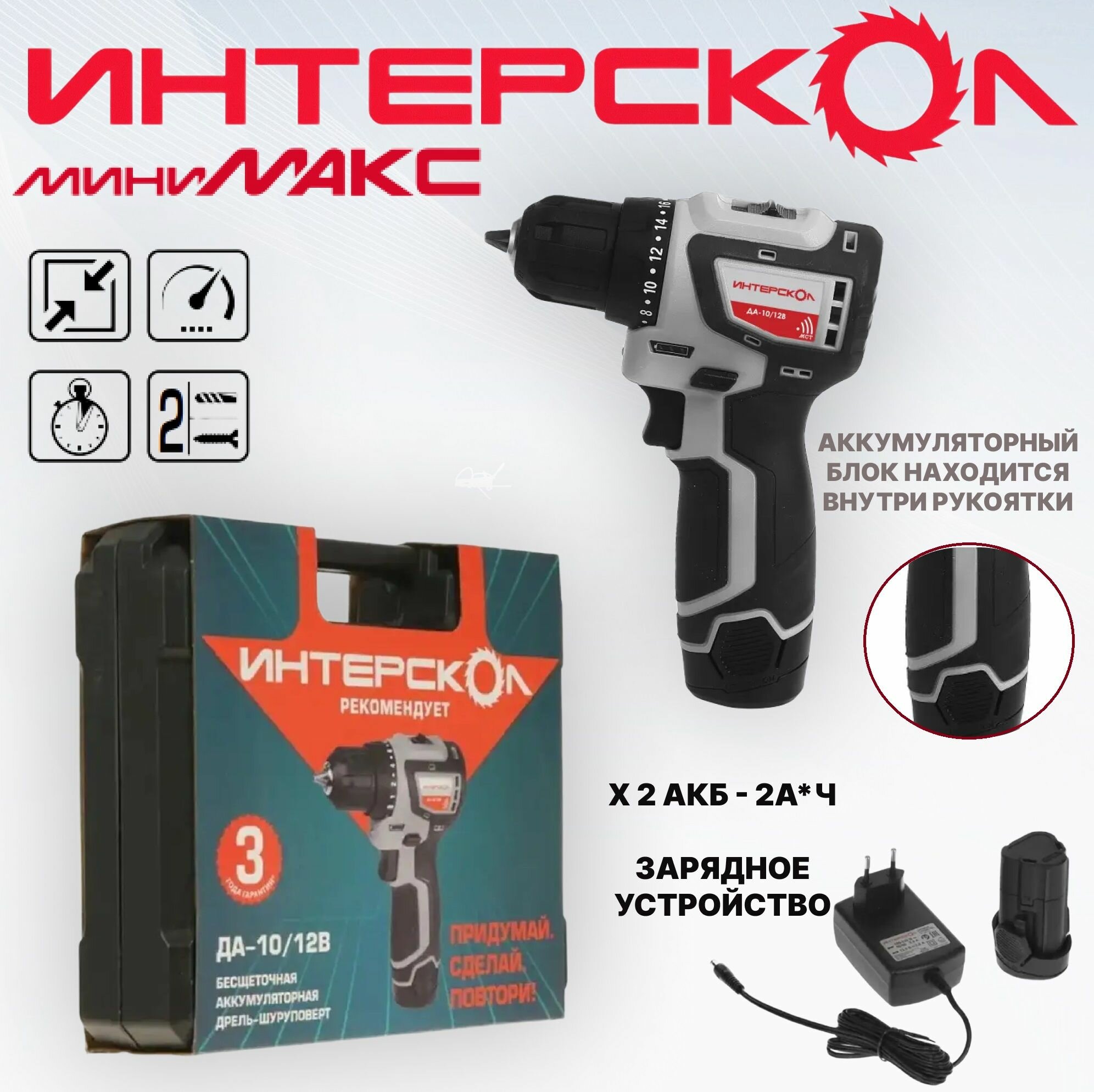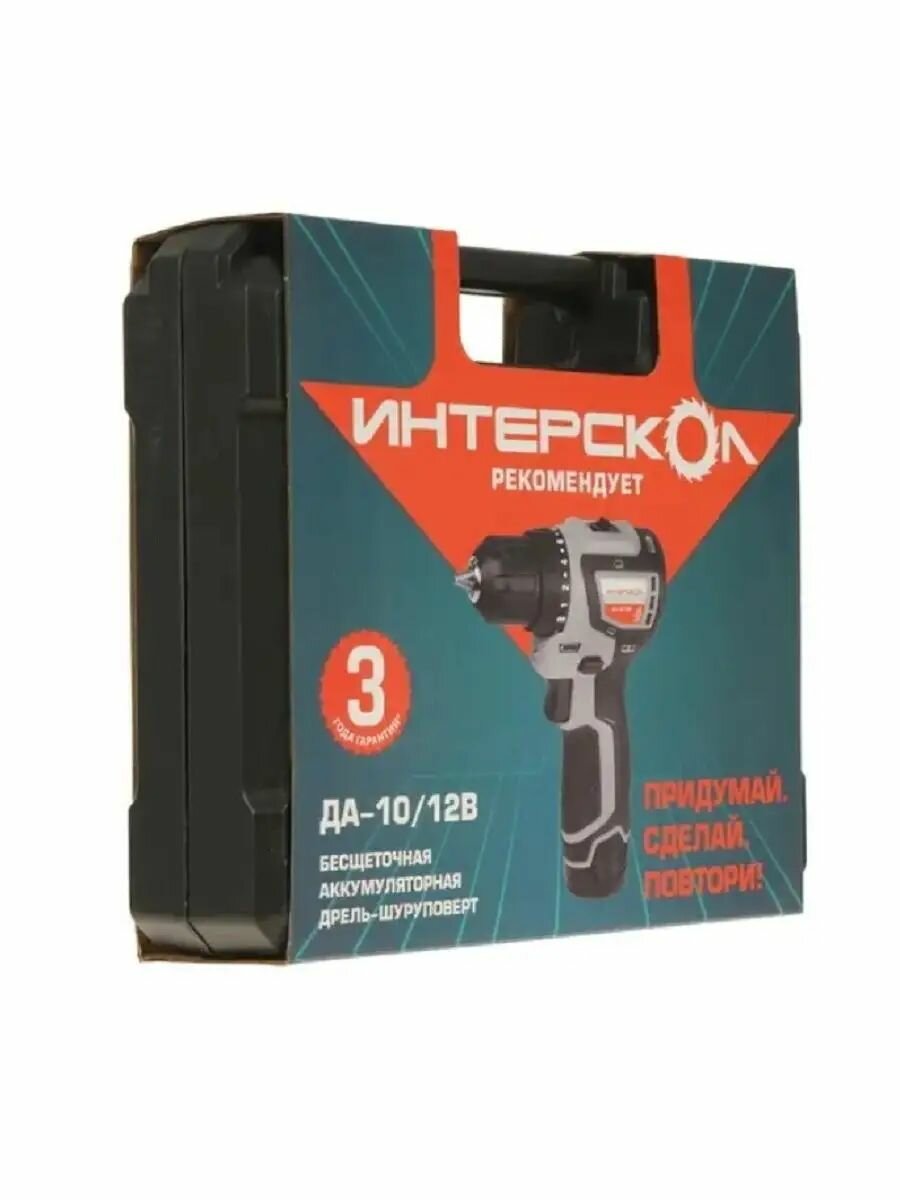 Купить Дрель-шуруповерт аккумуляторная Интерскол ДА-10/12В бесщеточная (Li-ion, кейс, 2 аккум., 2Ач)