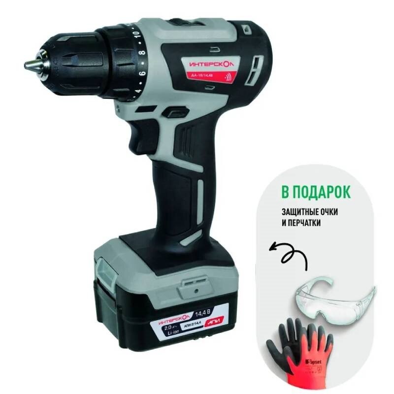 Дрель-шуруповерт аккумуляторная Интерскол ДА-10/12В, 12 В, 2 x 2 Ач, Li-Ion, ЗУ, кейс интересное: