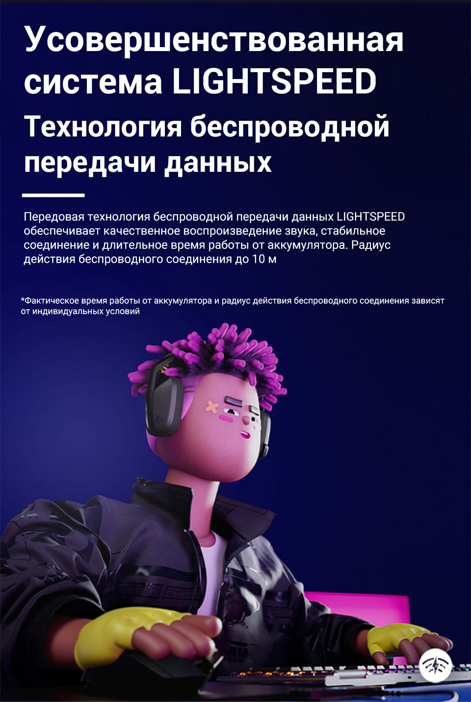 Беспроводная гарнитура Logitech G435 Lightspeed синий/сиреневый