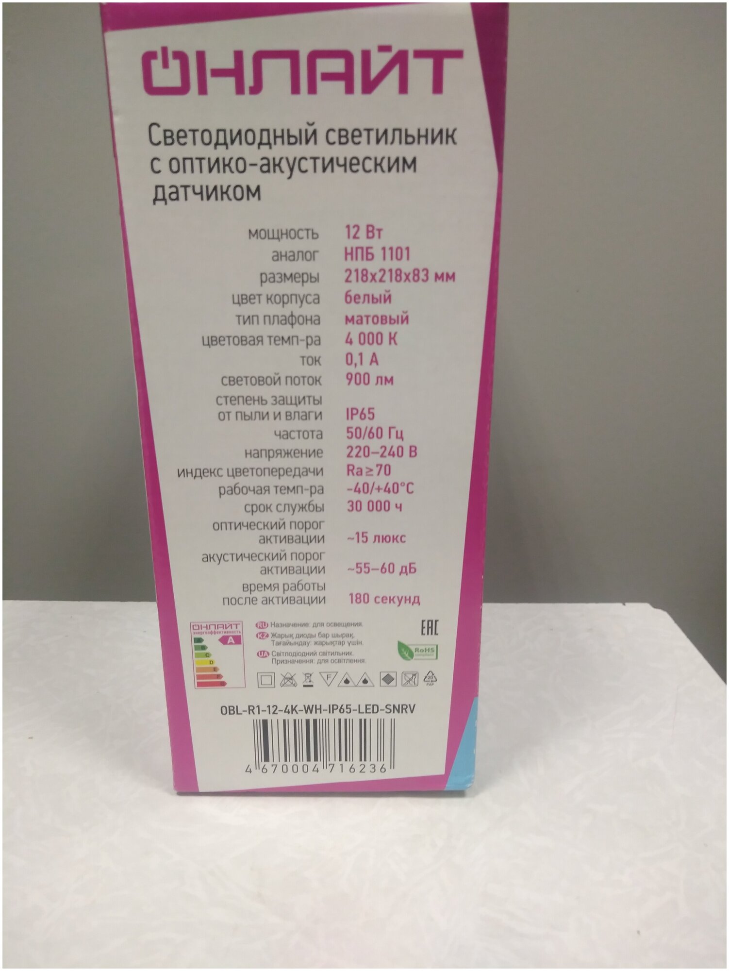 Светильник светодиодный с оптико-акустическим датчиком онлайт 71 623 OBL-R1, 12 Вт, дневного света 4000К, IP65