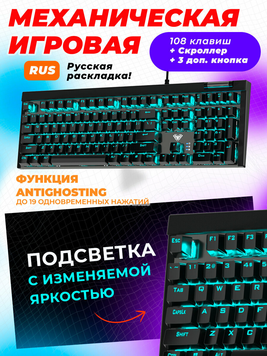 Клавиатура игровая AULA F3030 108 кл. механическая литая алюминий/пластик роллер+3кнопки RGB - чёрная 1.6м
