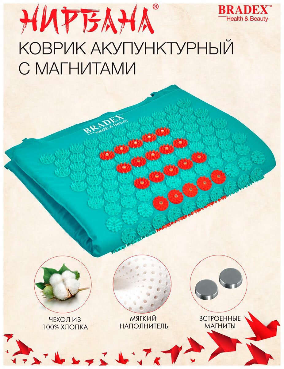 Массажный коврик BRADEX KZ 0811 нирвана с магнитами, акупунктурный, бирюзовый