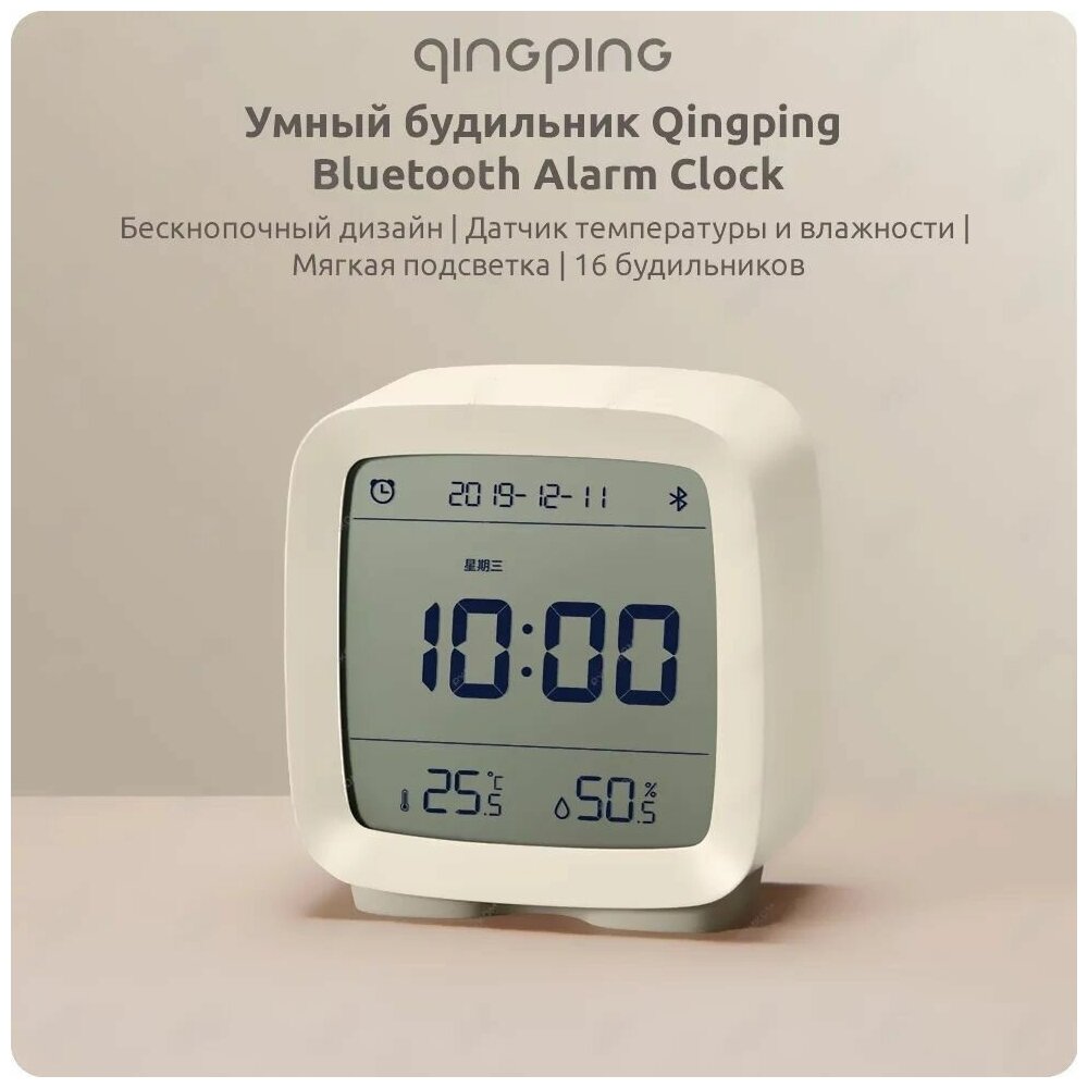 Умный будильник Xiaomi Qingping Bluetooth Alarm Clock Beige белый интересное: