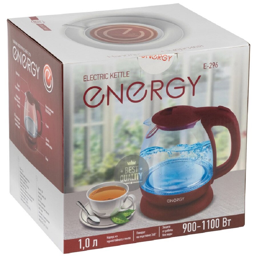 Чайник электрический Energy E-296 1 л, стекло, пластик, красный